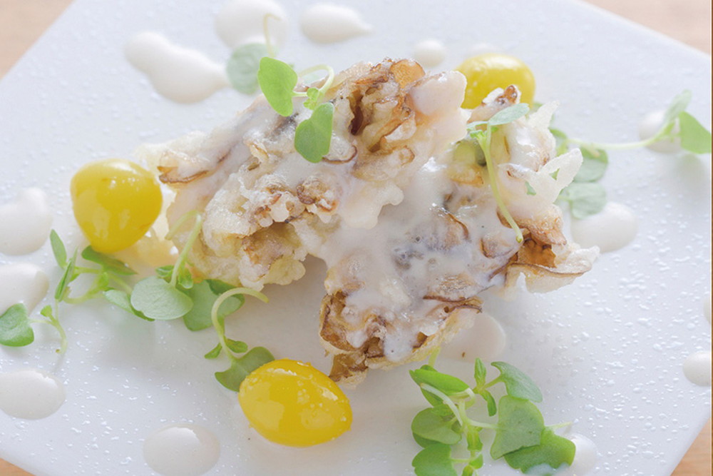 石畳と白木に囲まれたエントランスの先には、風雅な枯山水。器は1点物のオリジナルや骨董品を用い、豊洲市場で毎朝厳選した食材を仕入れるなど 随所に店主のこだわりが垣間見られます。旬の素材を生かした数々の料理を楽しんだ後、特別コースには、手作りのお茶菓子と台湾烏龍茶で食後の余韻を存分に堪能できます。