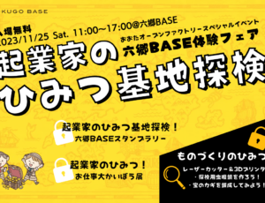 3Dプリンター・レーザーカッターを使った「ワークショップ」や起業家の仕事の様子がわかる「お仕事大かいぼう展」、施設内が見学できる「六郷BASEスタンプラリー」を開催します。