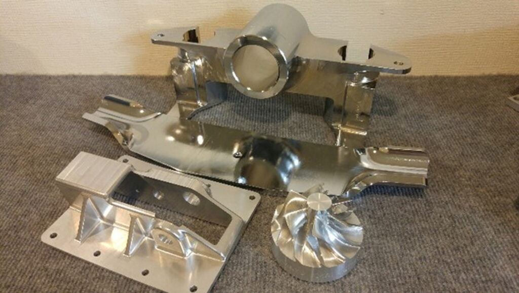 金属部品の切削加工と研削加工および組立(空気圧縮機、下町ボブスレー、鉄道駅の開閉式転落防止柵、電動モータのケーシング、自社製品「置けば地球儀ときどきカッター」と「グリーンフォーク」)