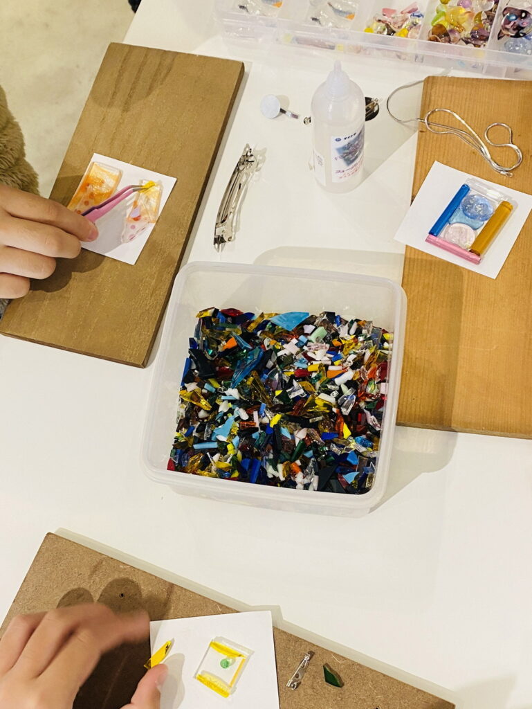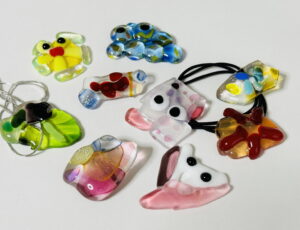 SDGsの観点から、何度でも再生可能なガラスのコップの廃材を利用してアクセサリー類を製作しています。