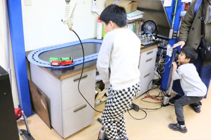 このほか空気圧で発電し模型の電車を走らせる体験のほか、職人の技術を結集して製作した巨大ジャイロゴマを回すなど来訪した子供たちに本気で遊ぶモノづくりの醍醐味を伝えた。