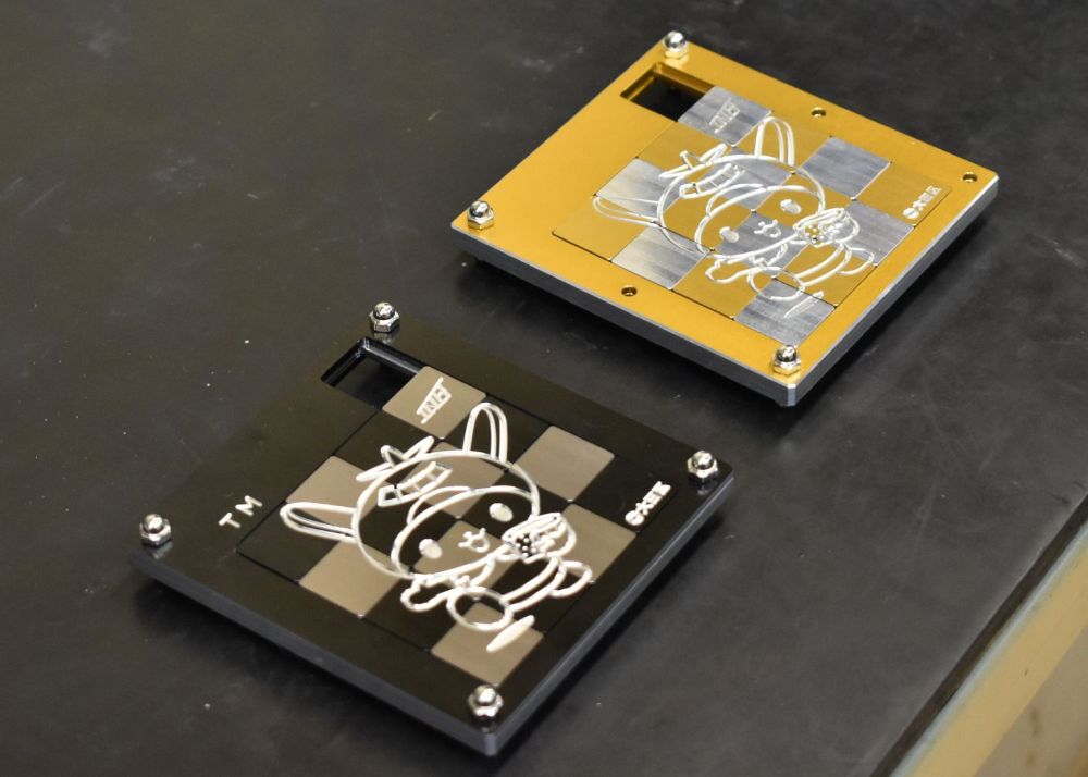 自動機械の設計加工のほか、各種部品の精密加工を手がける同社。金属加工を施したスライドパズルの組立体験のほか、ガラスの表面にデザインするサンドブラストなどモノづくりの楽しさを体験できる仕掛けを多数用意。