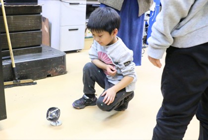 アイエヌビーは自社工場を公開して金属部品などを加工した玩具を製作するワークショップを開いた。