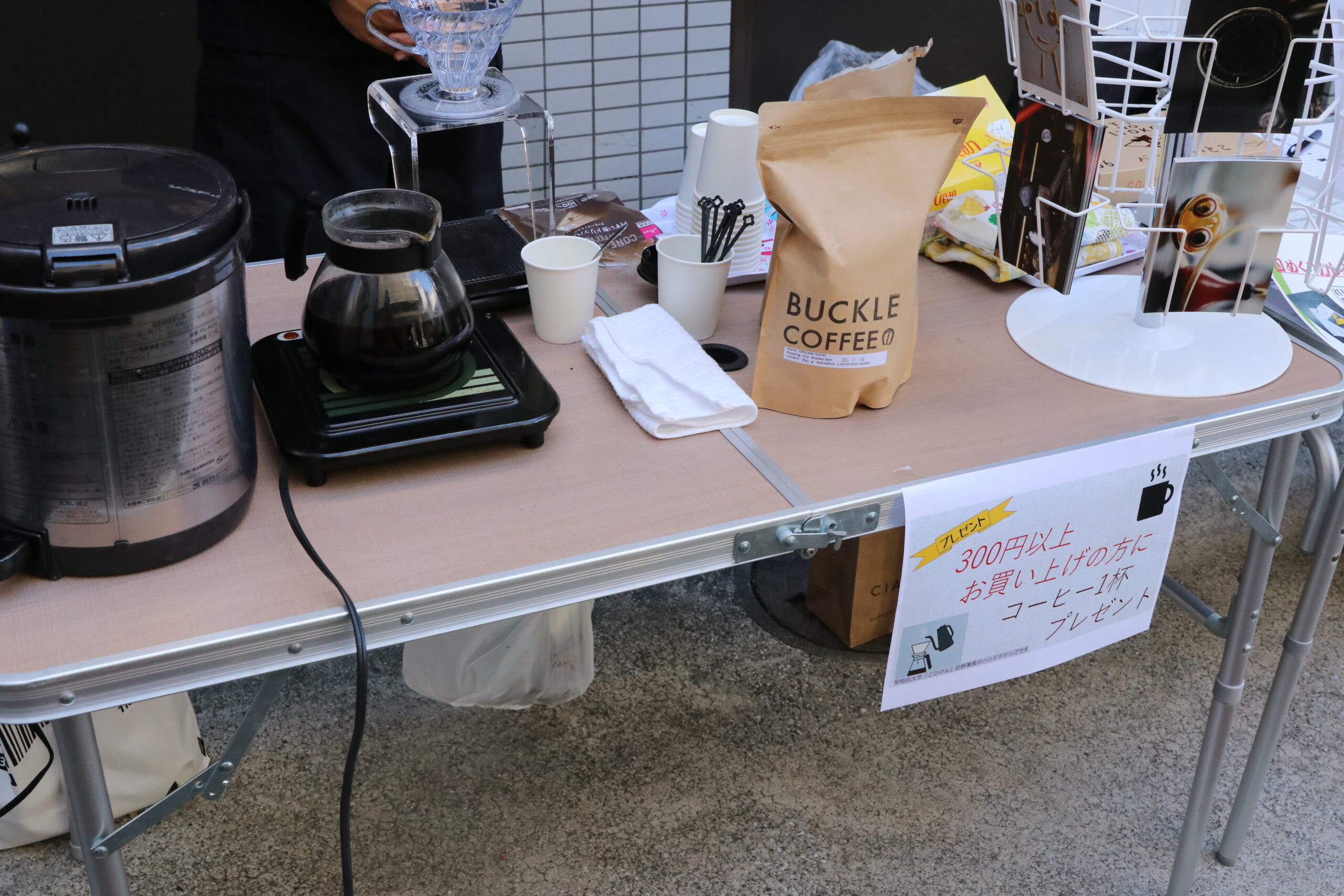 同社のオリジナルTシャツや社名にかけた「ヤスヒサコーヒー」などユニークな物販も実施。会場には家族連れがひっきりなしに訪れていた。