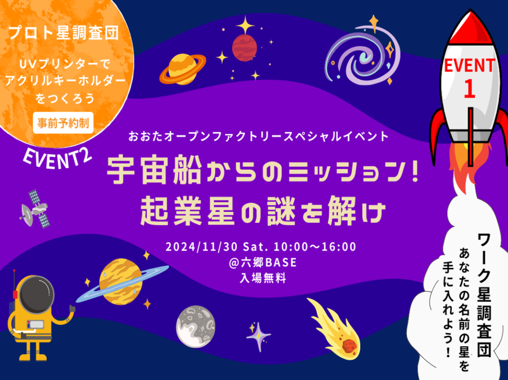 創業支援施設六郷BASEでは、UVプリンターを使用したオリジナルアクリルキーホルダー作りを開催。また、様々な起業家を知ることができる謎解きも行います。