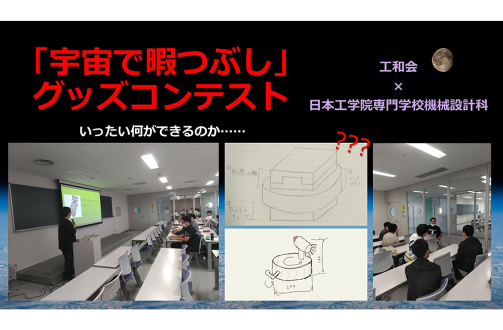 日本工学院専門学校機械設計科の学生と工和会メンバーがチームを組み、「宇宙で暇つぶし」をテーマにグッズを製作して展示します。