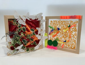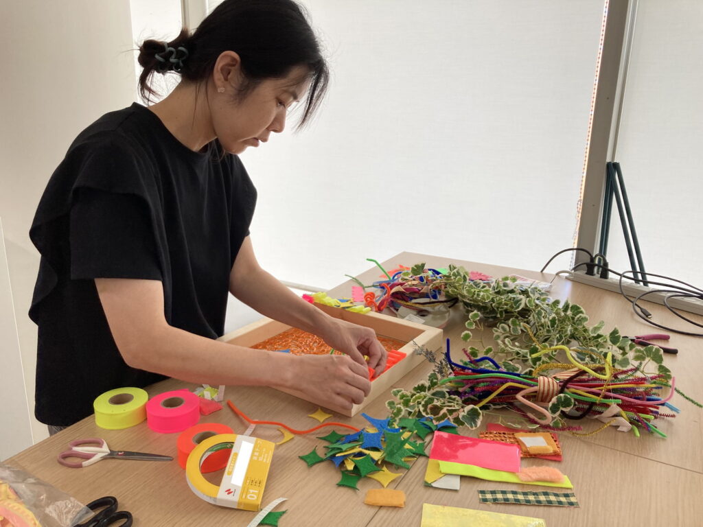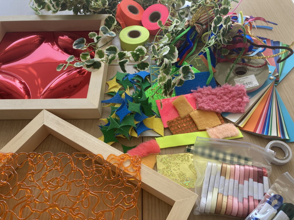 テレビ番組の美術セットから出るカーペットや木片などの廃材で、凹凸のある板材を装飾!個性あふれる壁掛けアート作品を作ります。素材の特徴を感じながら地球の未来にも想いを巡らせる。そんな体験をご提供します!