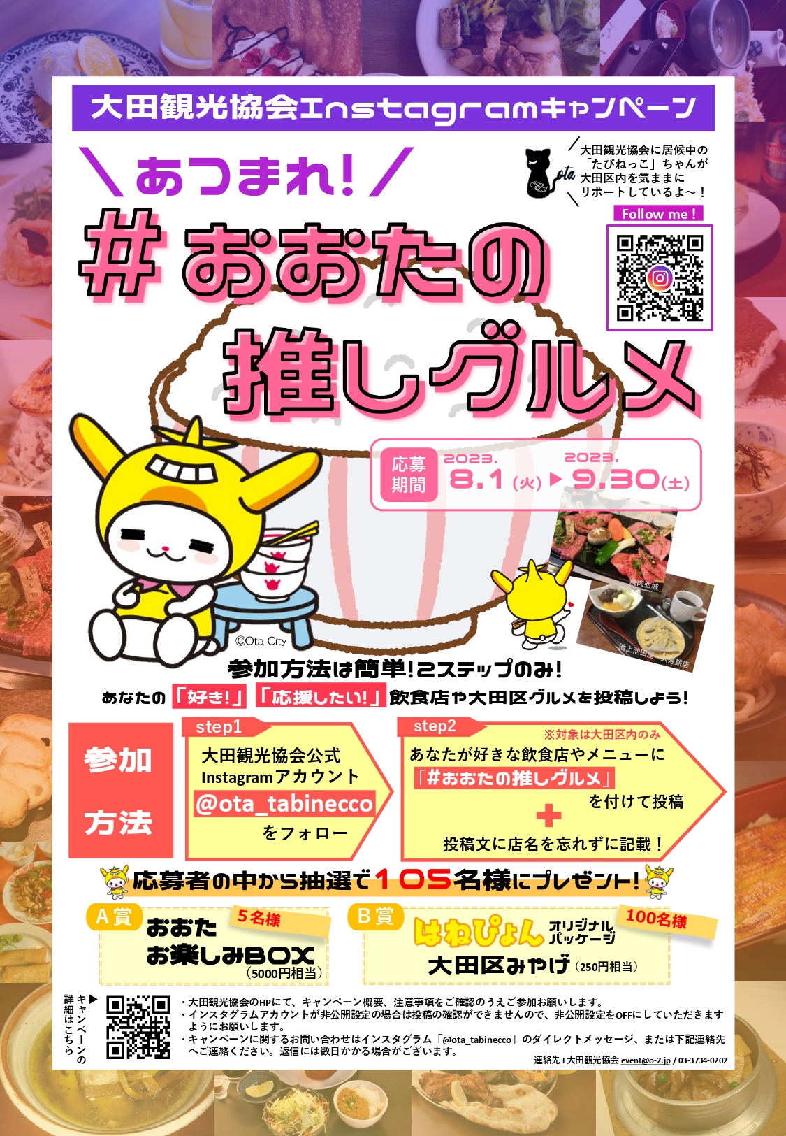 8月1日から9月30日まで大田観光協会主催のInstagram投稿キャンペーン「あつまれ!#おおたの推しグルメ!」を開催します。