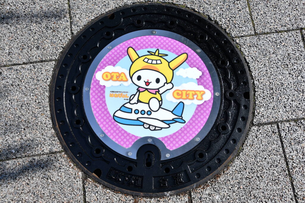 全国でご当地キャラクターや地域にゆかりのあるものなどをデザインした“デザインマンホール蓋”が注目されています。区内には「六郷とんび凧」「飛行機」「海苔×ふるはま」を描いた3つのはねぴょんデザインマンホール蓋が令和3年6月に設置されました。