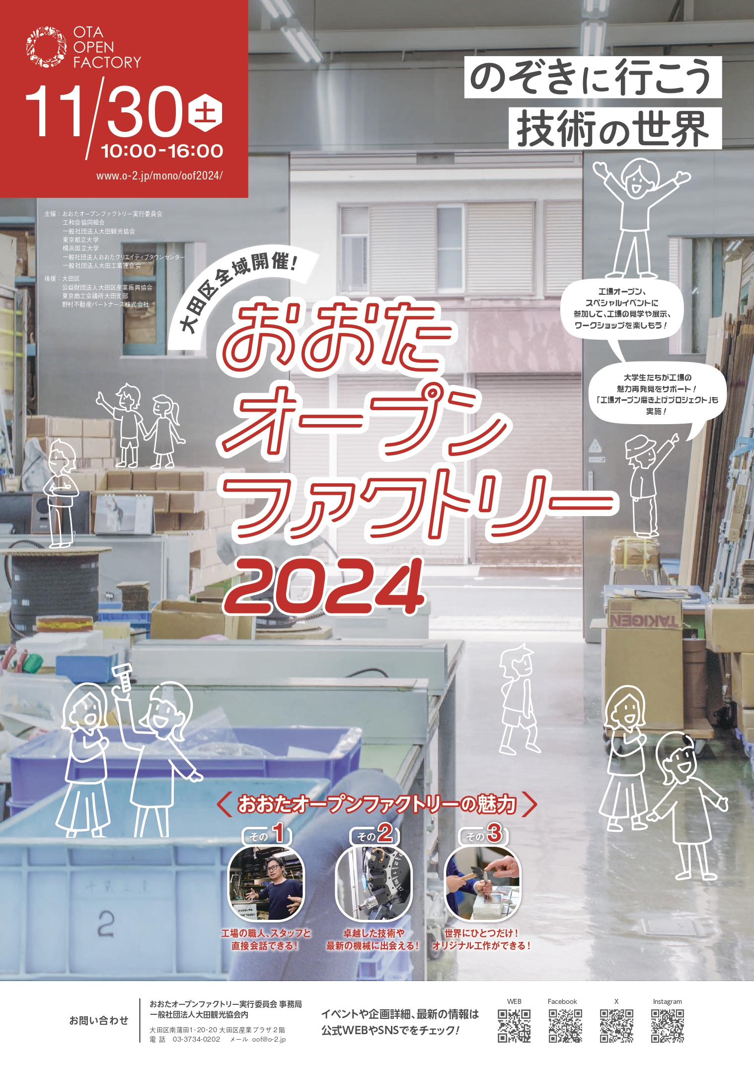 世界に誇れるおおたの技術を間近で見たり、職人と触れ合うことができる工場見学や技術を活かした体験メニューなど盛りだくさんの内容です!