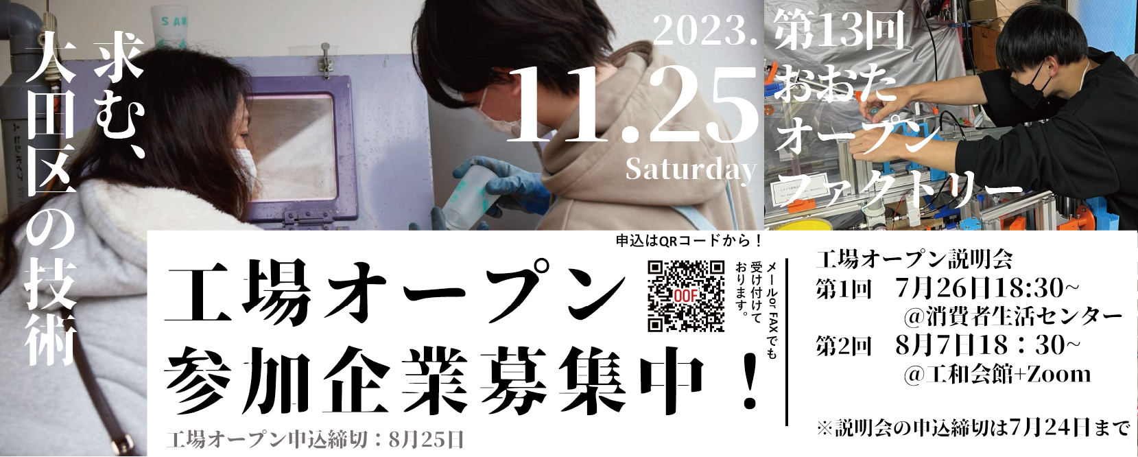 自社の工場をオープンして、私たちと一緒に大田区のものづくりブランドの発信したり、地域を盛り上げていただける大田区の製造業の皆様を募集しています。