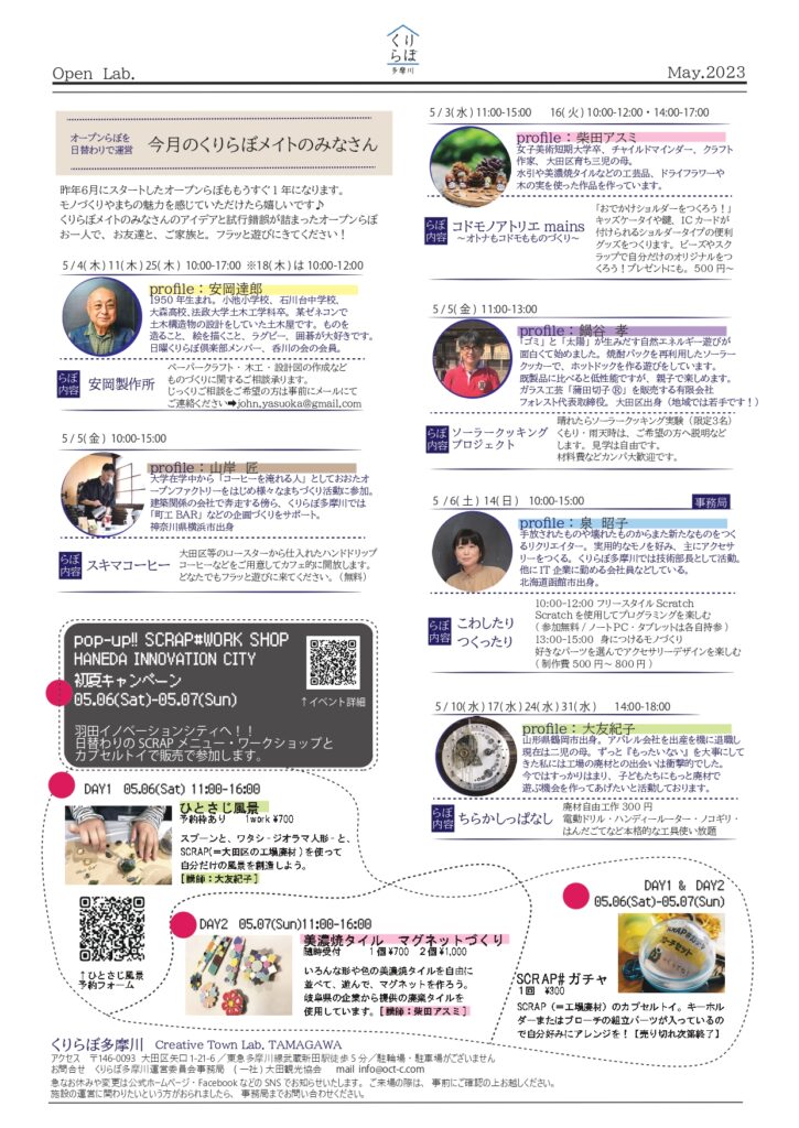 日替わりで様々なモノづくりを楽しめる『オープンらぼ』の5月スケジュールご案内です。